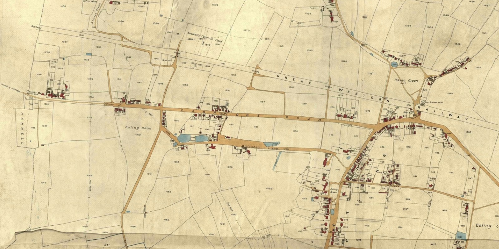 The 1839 tithe survey for Ealing reveals the land just west of the allotments was owned by Elizabeth Loveday. The north part known as 'Green Man Field' was being used as arable land by Elizabeth Humphreys. The south part was farmed by John Meacock of Little Ealing. Later maps show the land was used for a fruit and flower nursery.