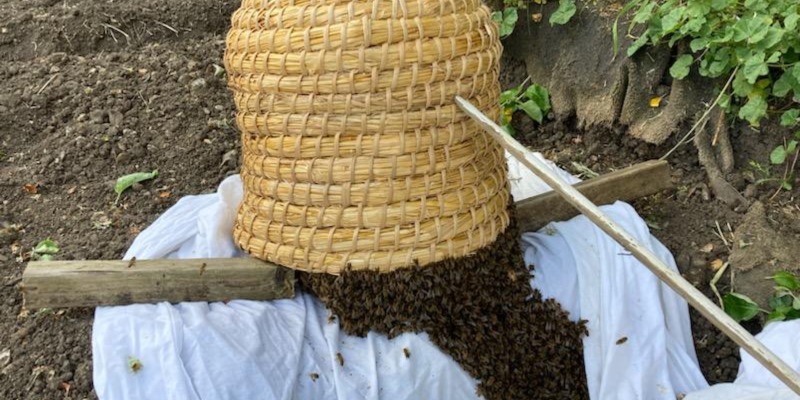 “We had placed a skep on the sheet with a gap at the bottom. They like the dark so they started climbing up into the skep.”